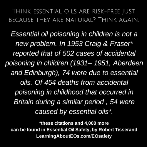 And this applies to ALL BRANDS of essential oils, even “therapeutic grade” or essential oils that are “GRAS” or “safe for ingestion.” Read: Name Games.