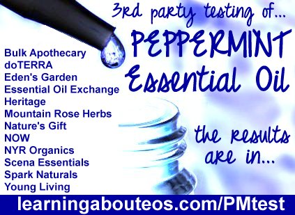 Note: As there was no indicator on the website what the country of origin was for Young Living’s Peppermint essential oil, I (Lea) e-mailed their Product Support department on Monday around noon and asked. Wednesday morning I still had not received a reply to my e-mail, so I telephoned their customer service and was told their Peppermint essential oil originates “in the US.” I asked “Are you sure?” and she said “Yes.” Hours later I received an e-mail in response to my original one from Monday, from a separate person, stating, “Our Peppermint originates in the Unites States and France.” Remember, this test was run against US ISO standards.