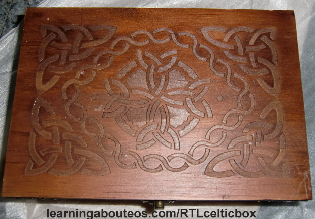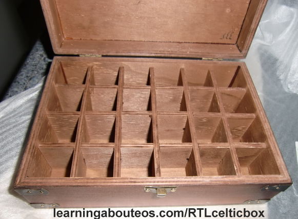 So there you have it! A peek at my awesome Celtic design wood storage box. Made from poplar, and stained with walnut, this makes for a beautiful gift, and a wonderful way to store essential oils out of the light.