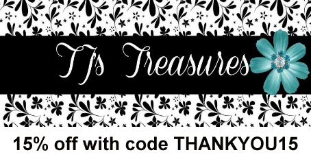 Tammy’s etsy shop is TJ’s Treasures. Click the image below to go to her store and get 15% off when you use code “THANKYOU15″ (no quotes). Code expires on 9/30.