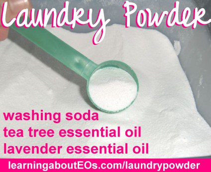 1. Add 1 box of washing soda to your container. 2. Add 20 drops Tea Tree essential oil, and 15 drops Lavender essential oil (you can replace this with Lemon or Peppermint or something else you like!). NOTE: If you like to really smell the aroma on your clothes, you can double this amount. 3. Mix well. I do this by closing the lid and shaking well. The oils will clump, so open the box and break them up and shake again, or stir. 4. Add the second box of washing soda, and shake again, mixing well and checking for lumps. Use 1 TBSP Lea’s Laundry Powder per load of laundry, twice that if heavily soiled. |