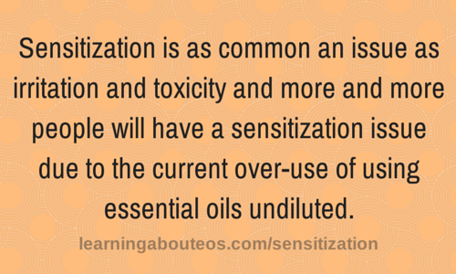 Sensitization is as common an issue as irritation and toxicity and more and more people will have a sensitization issue due to the current over-use of using essential oils undiluted.