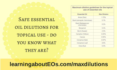 This is not an extensive list. I have chosen the ones that come up the most often in discussion over on the Using Essential Oils Safely facebook group. For a full list of over 400 essential oils you will need to check the book Essential Oil Safety, which also includes research citations (over 4,000 of them) and explanations as to why the dilutions are so low.